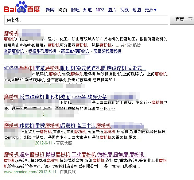 这种磨粉机排名的差异还不算太大,有时甚至有5名以上的差异,分析原因是不是站长现在还没有完全掌握百度现在的更新频率和算法?望懂得的人士给予指教~